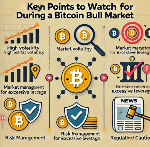 비트코인 상승장은 큰 수익을 올릴 기회를 제공하지만, 투자 리스크도 큽니다. 따라서 위에서 소개한 주의 사항을 염두에 두고 신중히 투자하는 것이 좋습니다. 비트코인 투자 시 변동성, 리스크 관리, 과도한 레버리지, 뉴스 검증, 규제 등을 고려해 더욱 안전한 투자 전략을 세우세요.